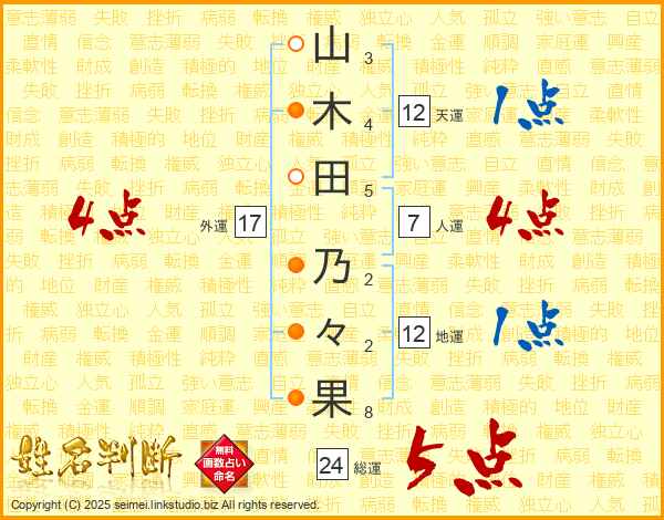 山木田乃々果さんの総運は24画の5点!