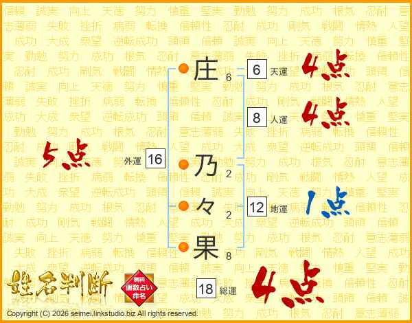 庄乃々果さんの総運は18画の4点!