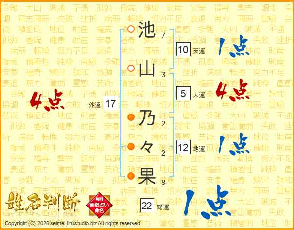池山乃々果さんの総運は22画の1点!