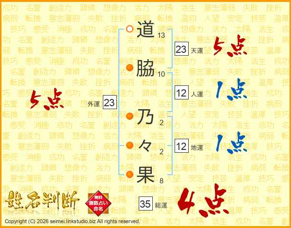 道脇乃々果さんの総運は35画の4点!
