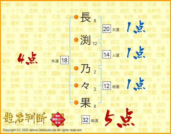 長渕乃々果さんの総運は32画の5点!