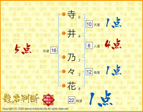 寺井乃々花さんの外運は16画の5点!