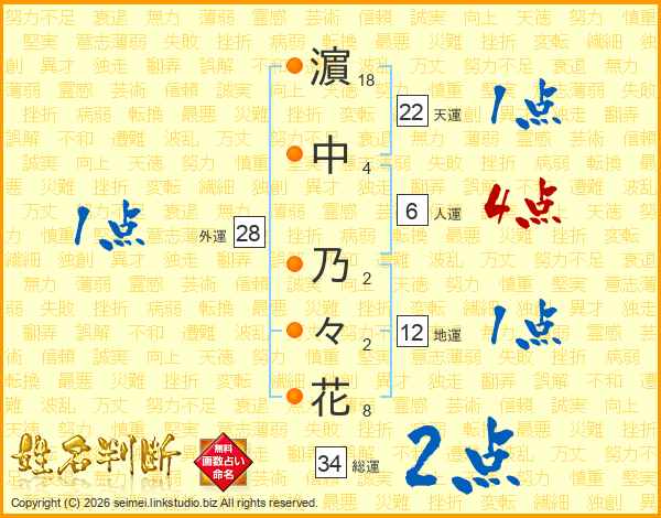 濵(18画)中(4画) 乃(2画)々(2画)花(8画)