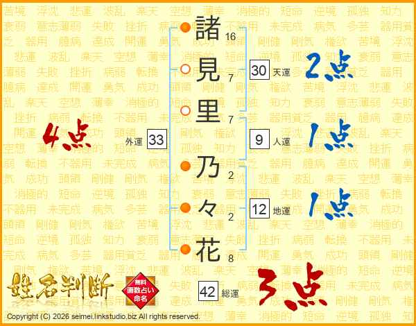 諸見里乃々花さんの外運は33画の4点!