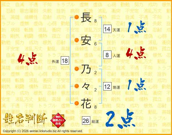 長安乃々花さんの総運は26画の2点!