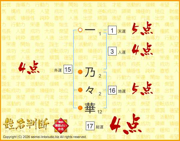一乃々華さんの外運は15画の4点!