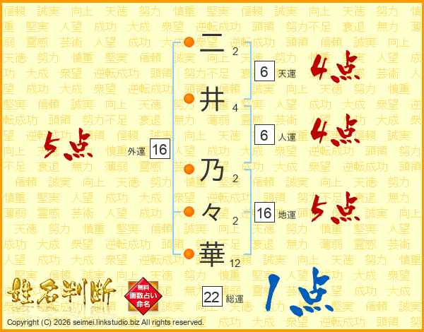 二井乃々華さんの外運は16画の5点!