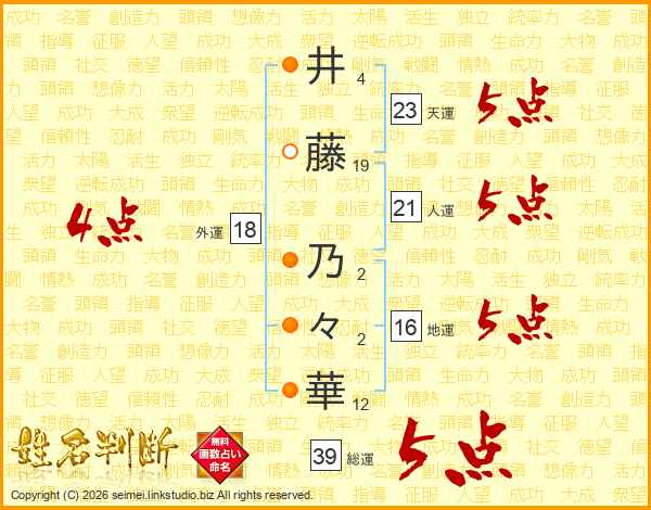 井(4画)藤(19画) 乃(2画)々(2画)華(12画)