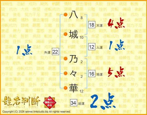 八(8画)城(10画) 乃(2画)々(2画)華(12画)