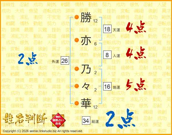 勝亦乃々華さんの外運は26画の2点!