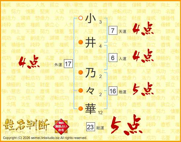 小井乃々華さんの外運は17画の4点!