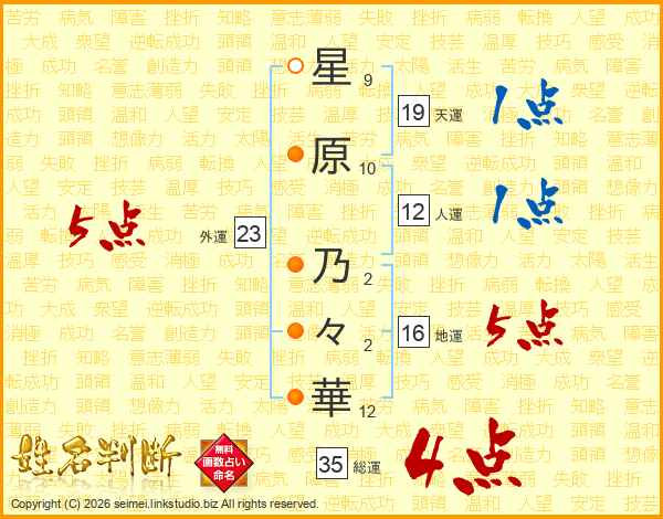 星(9画)原(10画) 乃(2画)々(2画)華(12画)