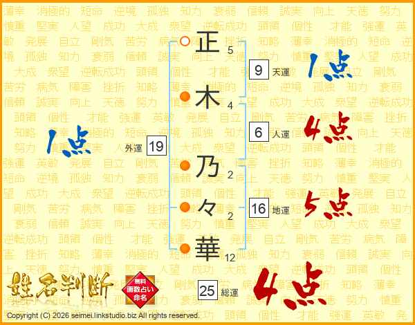 正木乃々華さんの総運は25画の4点!