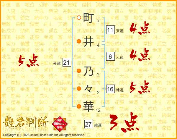 町井乃々華さんの外運は21画の5点!