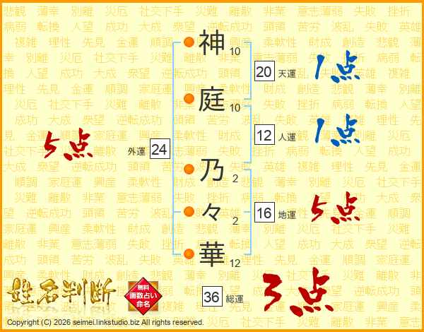 神庭乃々華さんの外運は24画の5点!