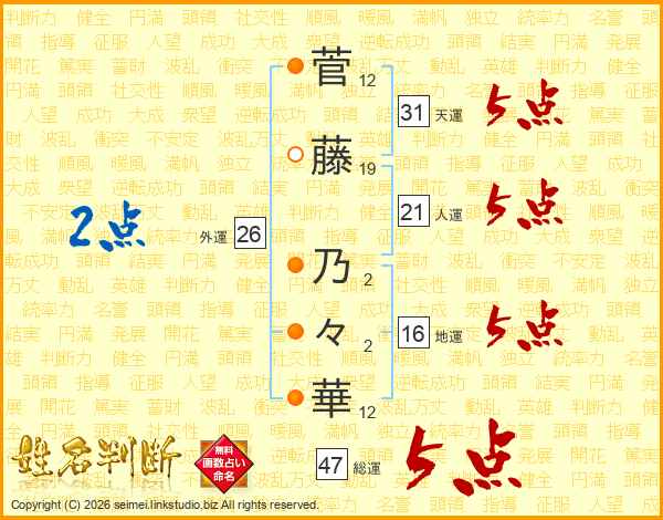 菅藤乃々華さんの総運は47画の5点!