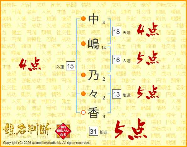 中嶋乃々香さんの総運は31画の5点!