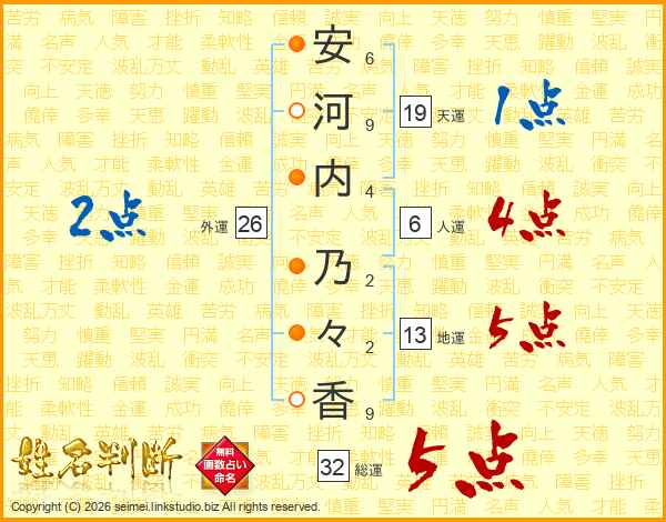 安河内乃々香さんの総運は32画の5点!