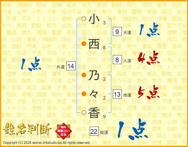 小西乃々香さんの総運は22画の1点!