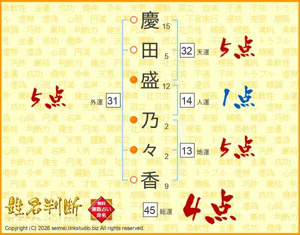 慶田盛乃々香さんの総運は45画の4点!