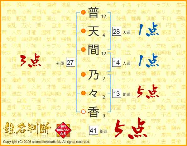 普天間乃々香さんの総運は41画の5点!