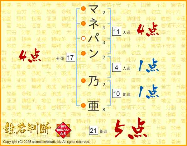 マネパン乃亜さんの総運は21画の5点!