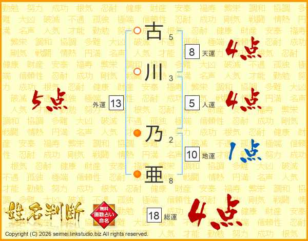 古川乃亜さんの総運は18画の4点!