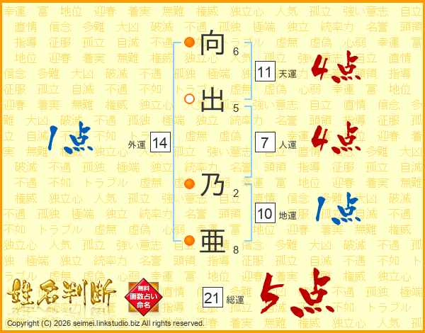 向出乃亜さんの総運は21画の5点!
