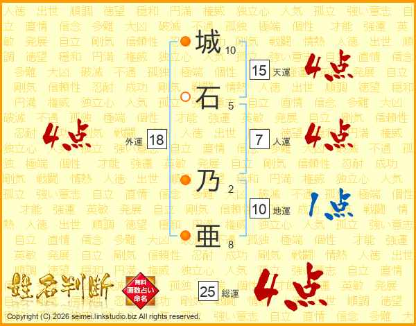 城石乃亜さんの総運は25画の4点!