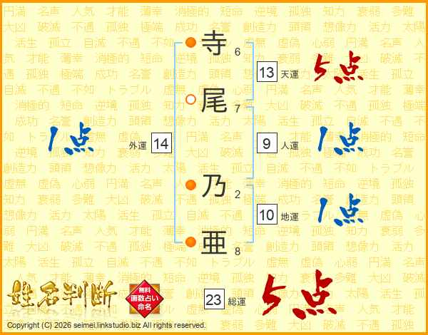 寺尾乃亜さんの総運は23画の5点!