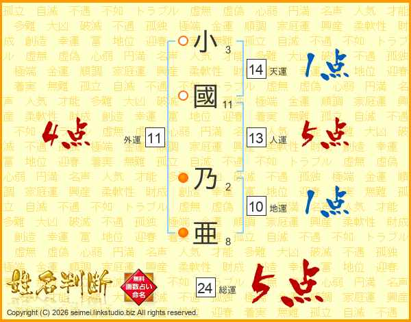 小國乃亜さんの総運は24画の5点!