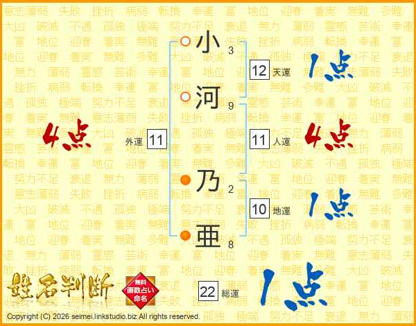 小河乃亜さんの人運は11画の4点!