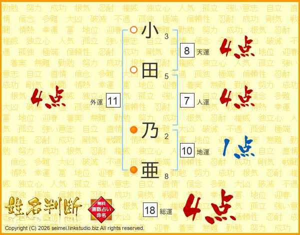 小田乃亜さんの総運は18画の4点!
