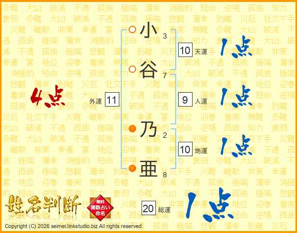 小谷乃亜さんの総運は20画の1点!