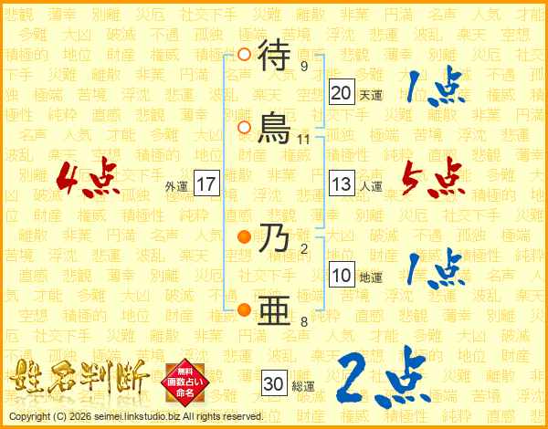 待鳥乃亜さんの外運は17画の4点!