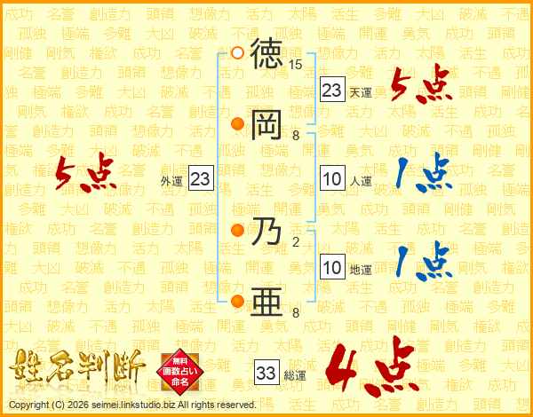徳岡乃亜さんの総運は33画の4点!
