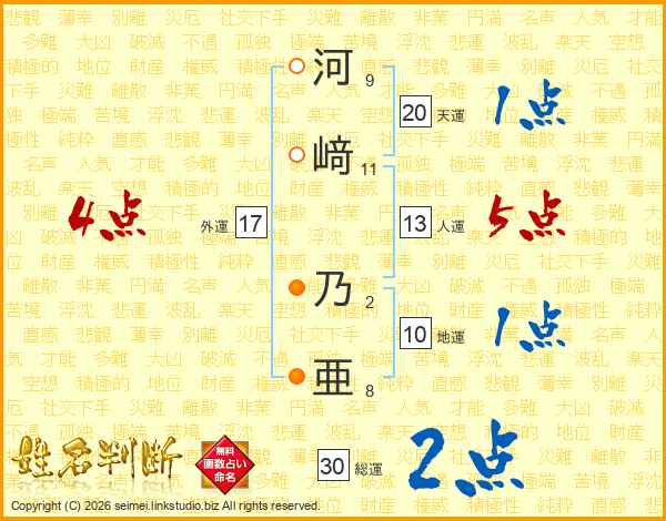 河(9画)﨑(11画) 乃(2画)亜(8画)