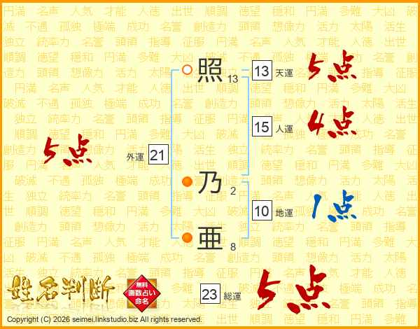 照乃亜さんの総運は23画の5点!