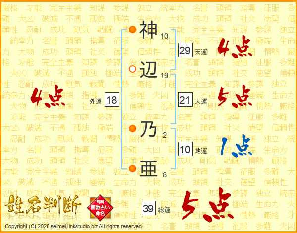 神辺乃亜さんの総運は39画の5点!