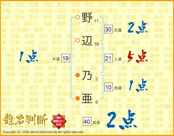 野辺乃亜さんの総運は40画の2点!