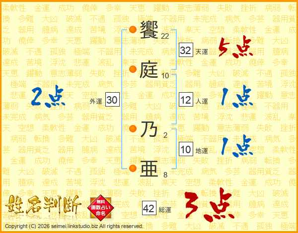 饗庭乃亜さんの天運は32画の5点!
