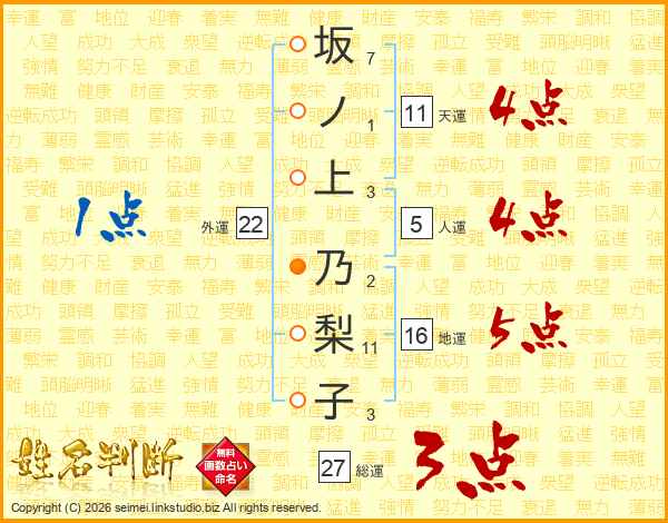 坂ノ上乃梨子さんの総運は27画の3点!