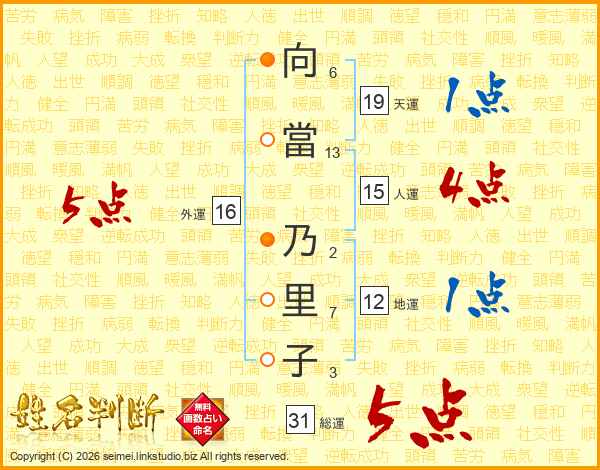 向當乃里子さんの総運は31画の5点!