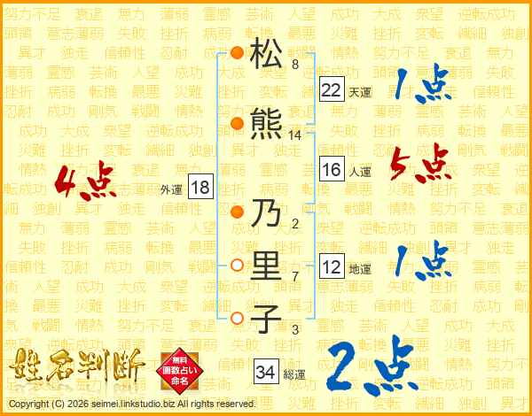 松熊乃里子さんの総運は34画の2点!