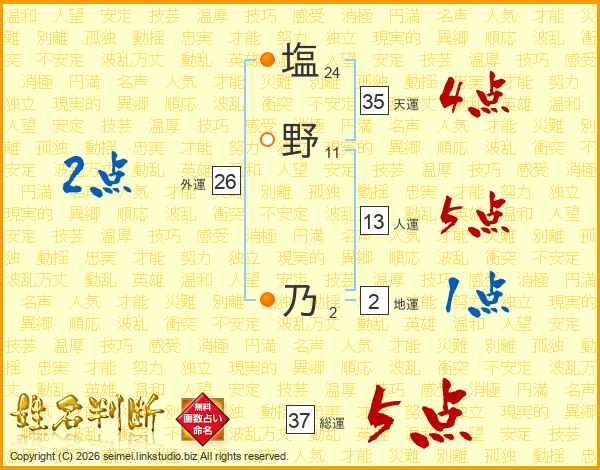 塩野乃さんの総運は37画の5点