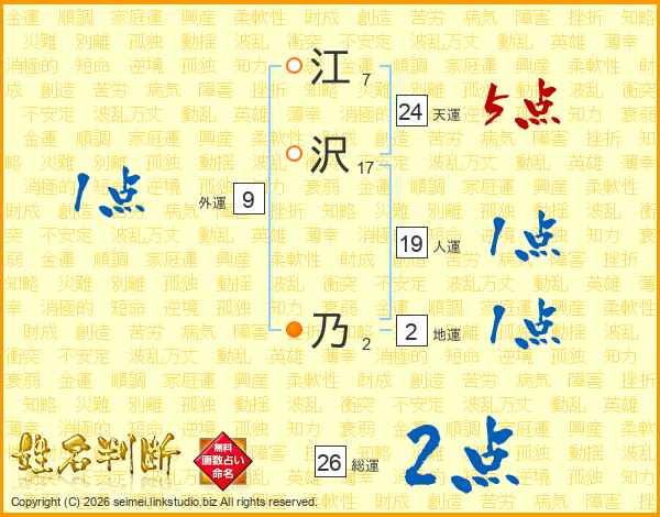 江沢乃さんの総運は26画の2点!