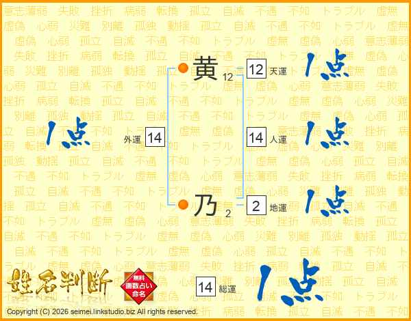 黄乃さんの総運は14画の1点!