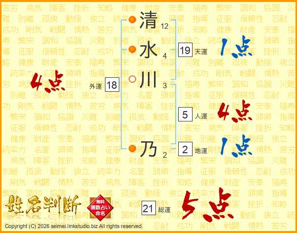 清水川乃さんの総運は21画の5点!