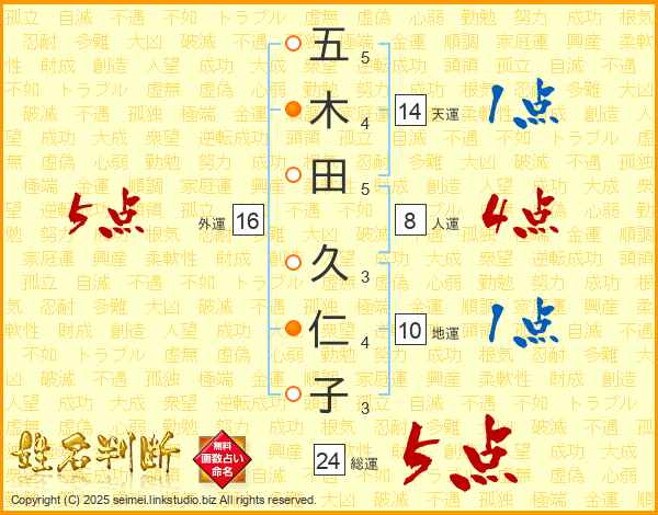 五木田久仁子さんの総運は24画の5点!