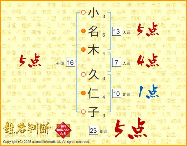 小(3画)名(6画)木(4画) 久(3画)仁(4画)子(3画)